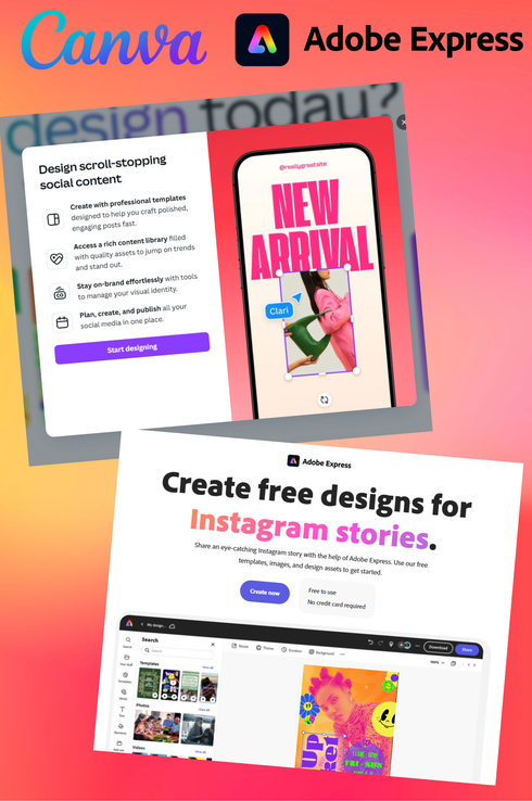 With Canva or Adobe Express, you can make beautiful, pro-level graphics — even if you’ve never touched Photoshop in your life.